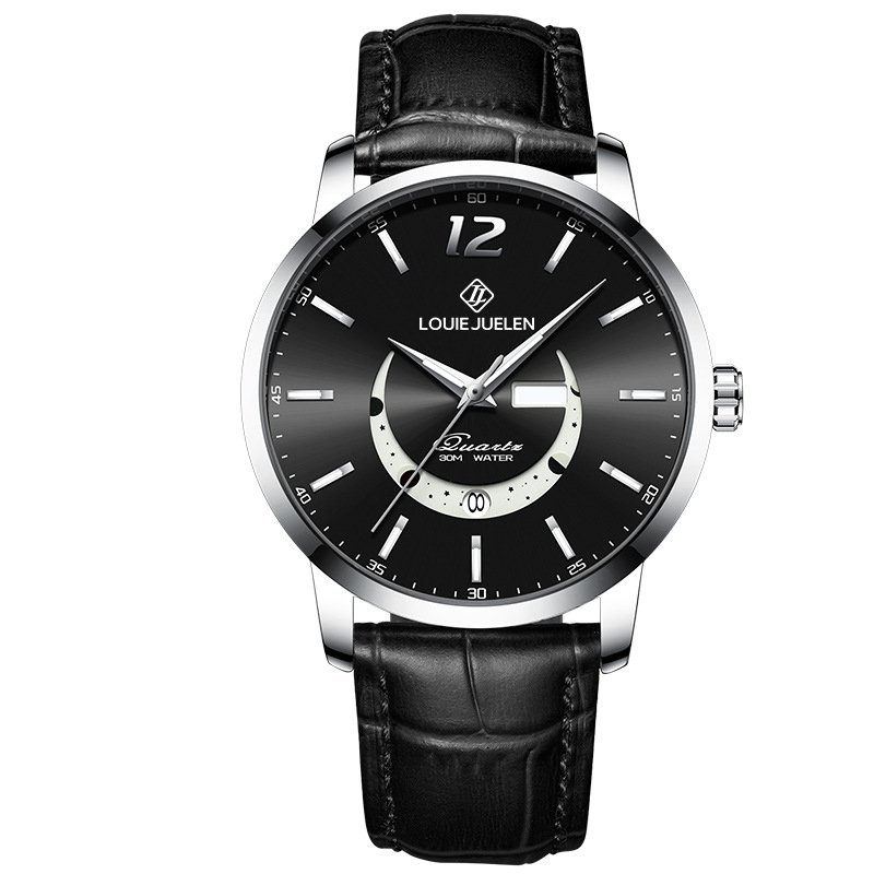 นาฬิกาข้อมือผู้ชาย หน้าปัดลายพระจันทร์ แบบเรืองแสง กันน้ำได้